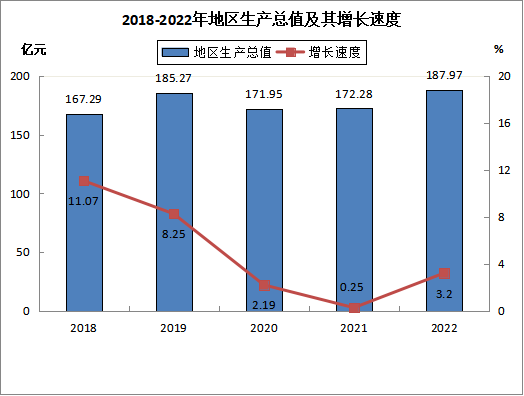 根據(jù)地區(qū)生產(chǎn)總值統(tǒng)一核算結(jié)果,2022年鹿寨縣生產(chǎn)總值(GDP)187.97億元,按不變價(jià)格計(jì)算,比上年增長3.2%。分產(chǎn)業(yè)看,第一產(chǎn)業(yè)增加值50.95億元,增長4.0%;第二產(chǎn)業(yè)增加值57.93億元,增長5.4%;第三產(chǎn)業(yè)增加值79.09億元,增長1.1%。第一產(chǎn)業(yè)、第二產(chǎn)業(yè)、第三產(chǎn)業(yè)占全縣生產(chǎn)總值比重為27.1%、30.8%、42.1%,第二產(chǎn)業(yè)逐漸恢復(fù)。按常住人口計(jì)算,全年人均地區(qū)生產(chǎn)總值55507元,增長3.0%。